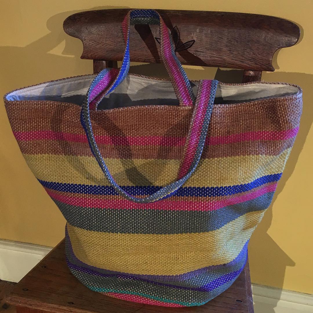 Tejida a mano en el área de Tangail de Bangladesh, esta bolsa está hecha por los socios Programa de Empoderamiento de la Mujer, que apoya a mujeres vulnerables.