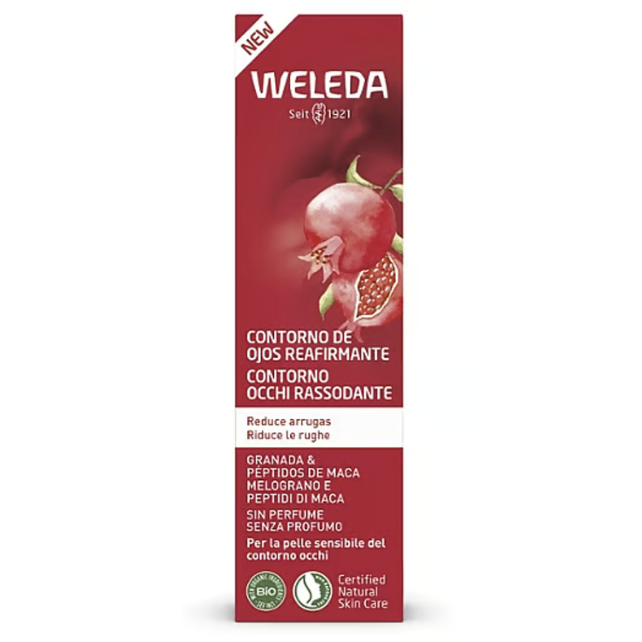 El contorno de ojos reafirmante Weleda con Granada y péptidos de Maca reduce arrugas, bolsas y ojeras.