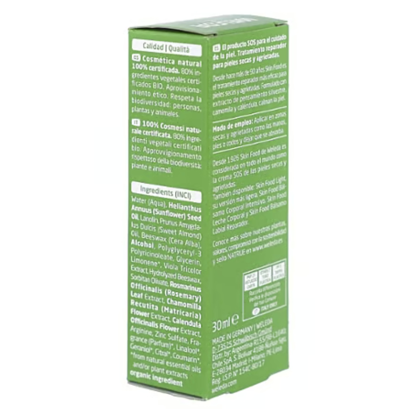 Laura - 23/07/2019 11:10:13 el envase es pequeño y cunde poco, pero el producto es bueno, lo utilizo para todo, talones agrietados, codos, como crema de noche dos veces por semanas (es muy hidratante) como aftersun, incluso mezclo unas gotas del aceite para estrías de weleda con Skin Food para evitar las estrías durante el embarazo me dija la piel hidratada durante mas tiempo que solo con el aceite. Es genial, le pongo un 4 porque cunde poco. ¿Te ha resultado útil esta opinión? (0) (0)