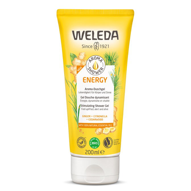 Weleda Aroma Shower Energy es un gel de ducha formulado con aceites enseciales 100% naturales, pH afín a la piel y sin jabón. Limpia suavemente sin resecar, siendo apto también para pieles sensibles.
