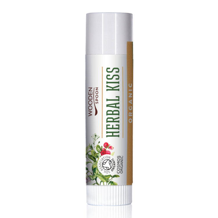 Herbal Kiss de Wooden Spoon calma y cura los labios agrietados y secos. Contiene una cantidad significativa de cera de abejas, que forma una fina película sobre la piel. Es imprescindible en climas fríos y ventosos, pero también en días secos y calurosos.