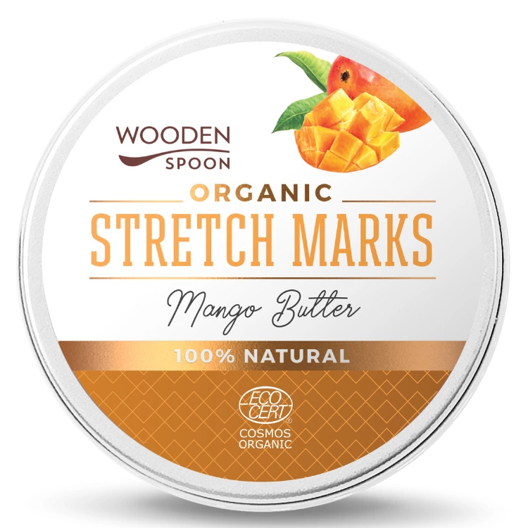La manteca de mango para estrías Wooden Spoon contiene ingredientes naturales, con certificación orgánica y aptos para el consumo. Tiene una textura ligera que se funde al contacto con la piel. Posee una delicada fragancia natural a aceites esenciales. Alivia la sensación de picor e irritación. Está diseñada para usarse en el abdomen, los senos, los muslos y las caderas.
