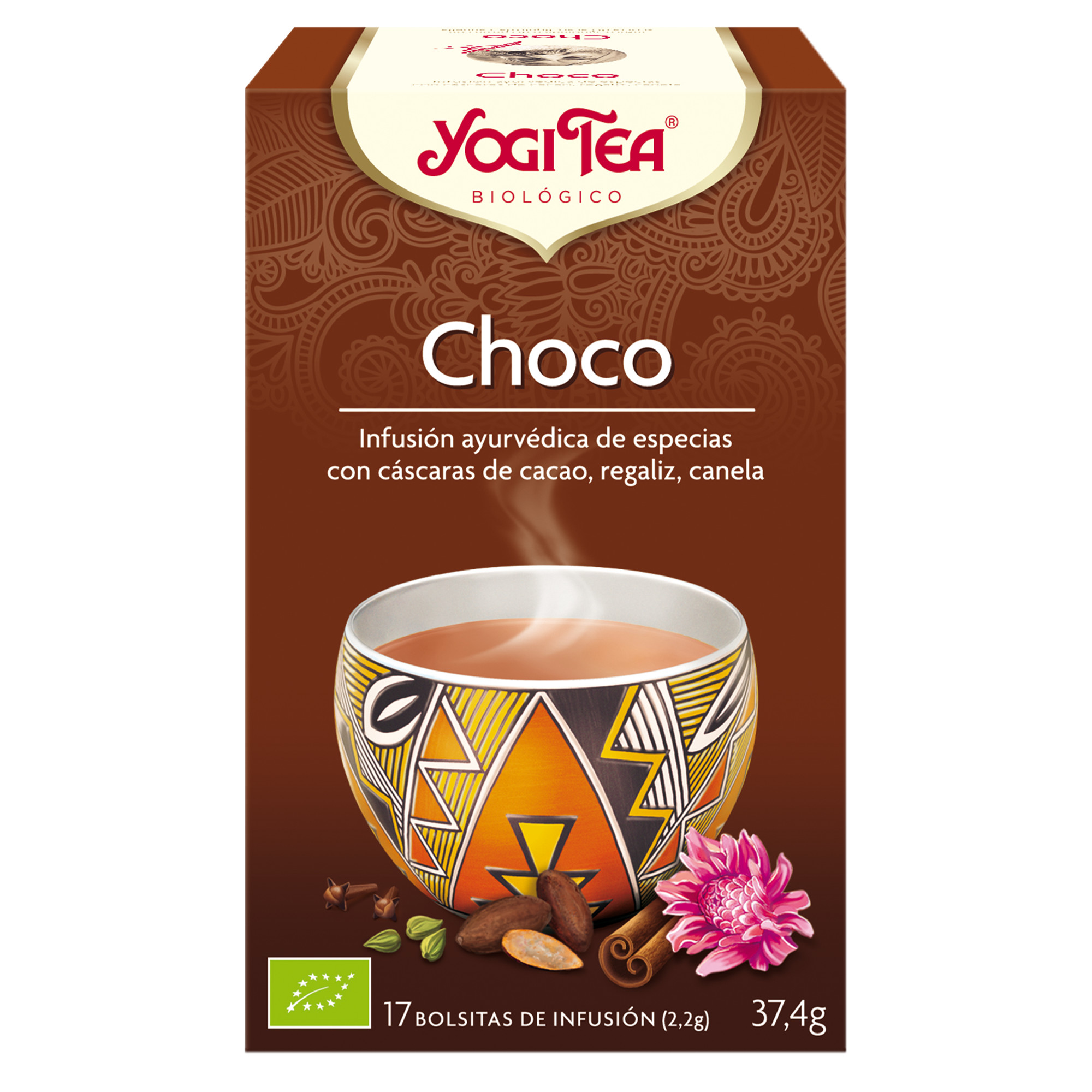 Las especias exóticas del Lejano Oriente mezcladas con cáscara de cacao puro de América del Sur, dan a YOGI TEA® Choco un sabor único y un delicioso aroma. Los maravillosos sabores de jengibre y canela mezclados con delicadeza con la esencia inconfundible del cacao, templan el cuerpo y el espíritu.