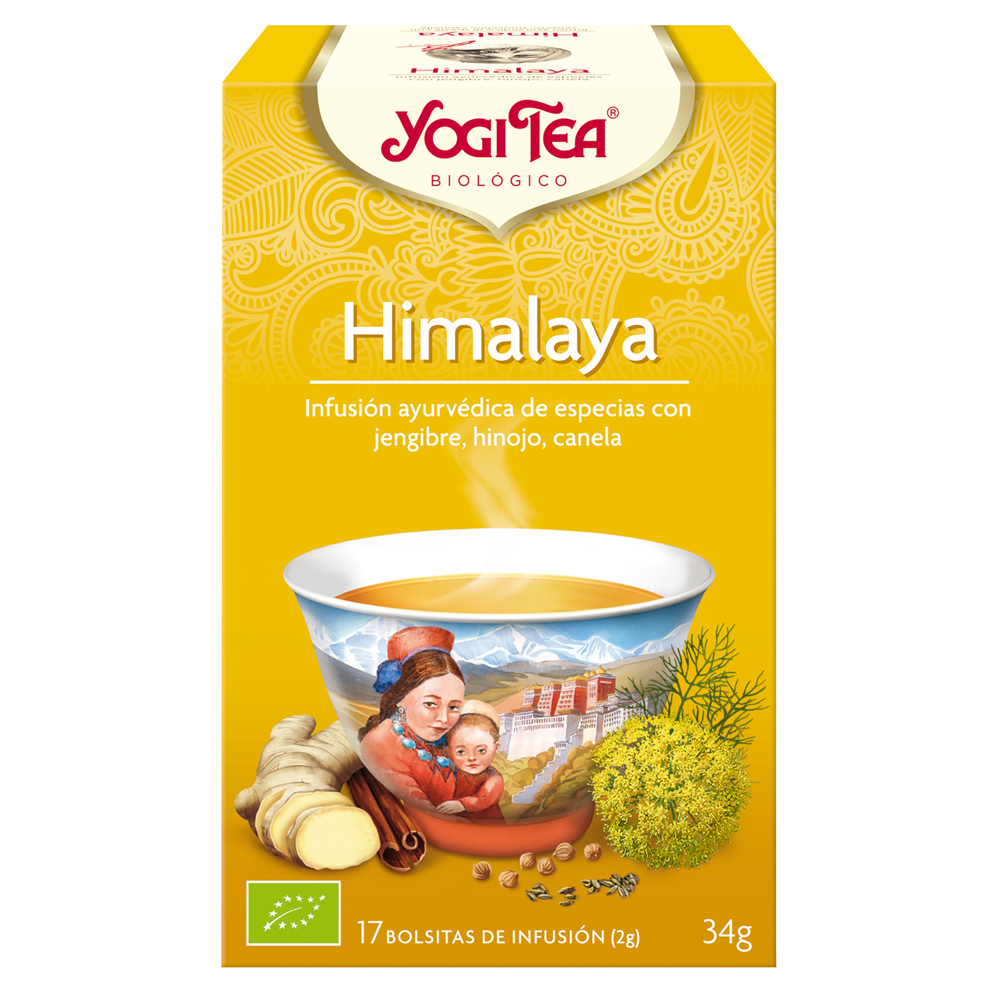 YOGI TEA® Himalaya es una receta herbal con gran tradición que recoge la energía contemplativa de la majestuosa cordillera del Himalaya. El hinojo y el jengibre picante le dan a este chai clásico un misterioso sabor y un rico aroma. La incorporación de la suave y dulce canela, el anís y el cilantro lo hacen especialmente delicioso. Se disfruta en la tradición india, endulzado y con un poco de leche, animal o vegetal. La esencia de esta infusión es: "Equilibrio y apertura".