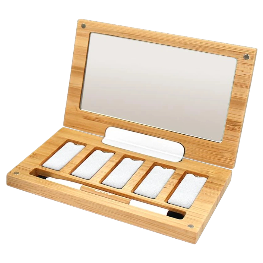 El estuche dúo de ZAO, realizado en bambú, que permite almacenar 5 sombras de ojos rectangulares de 1,3 gramos cada una.